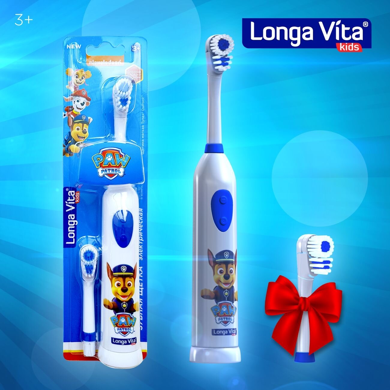 Longa Vita Детская зубная щетка ротационная + 2 сменных насадки Гончик, Paw Patrol 3+, Longa vita