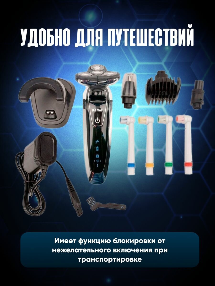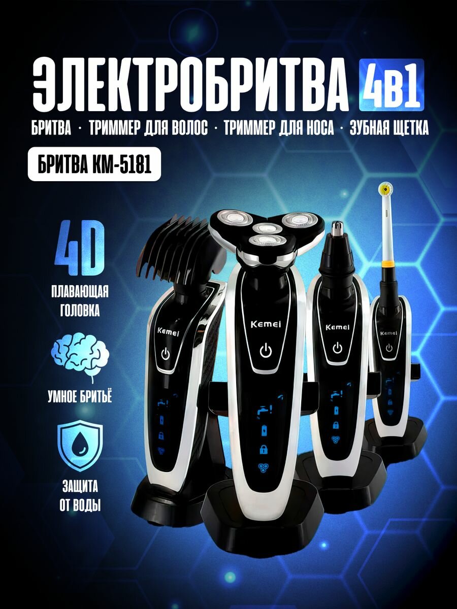 Электробритва 4в1 Kemei + Машинка для стрижки волос + Триммер + Электрическая зубная щетка