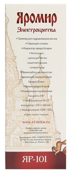 Бритва электрическая яромир ЯР-101 синий с черным: 3 Вт