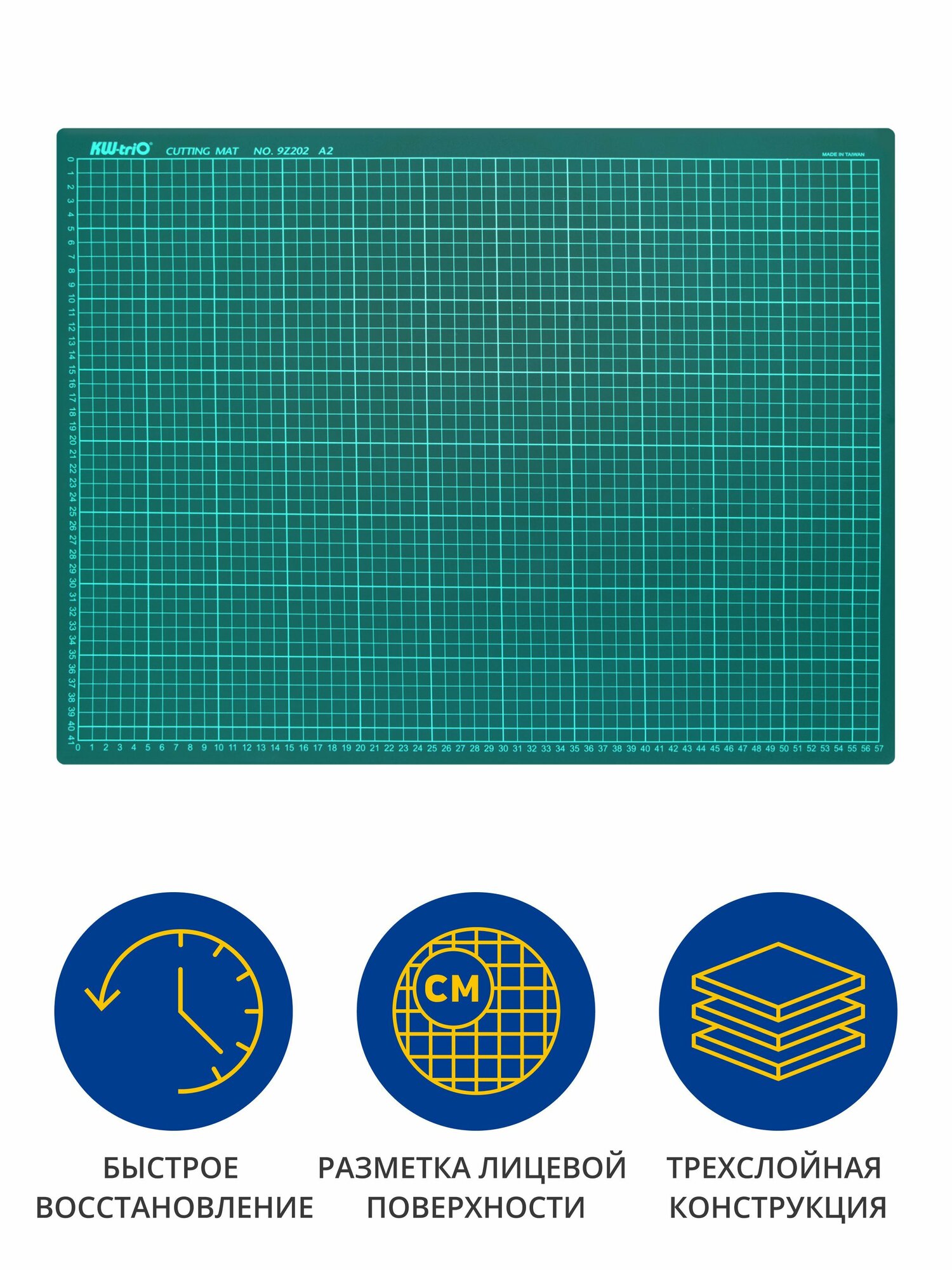 Коврик для резки KW-Trio A2, 60×45см, толщина 3мм, разметочная сетка