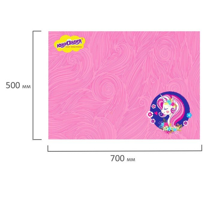 Клеёнка настольная для занятий творчеством юнландия, единорог, 50х70 см, ПВХ, 662455, 662455