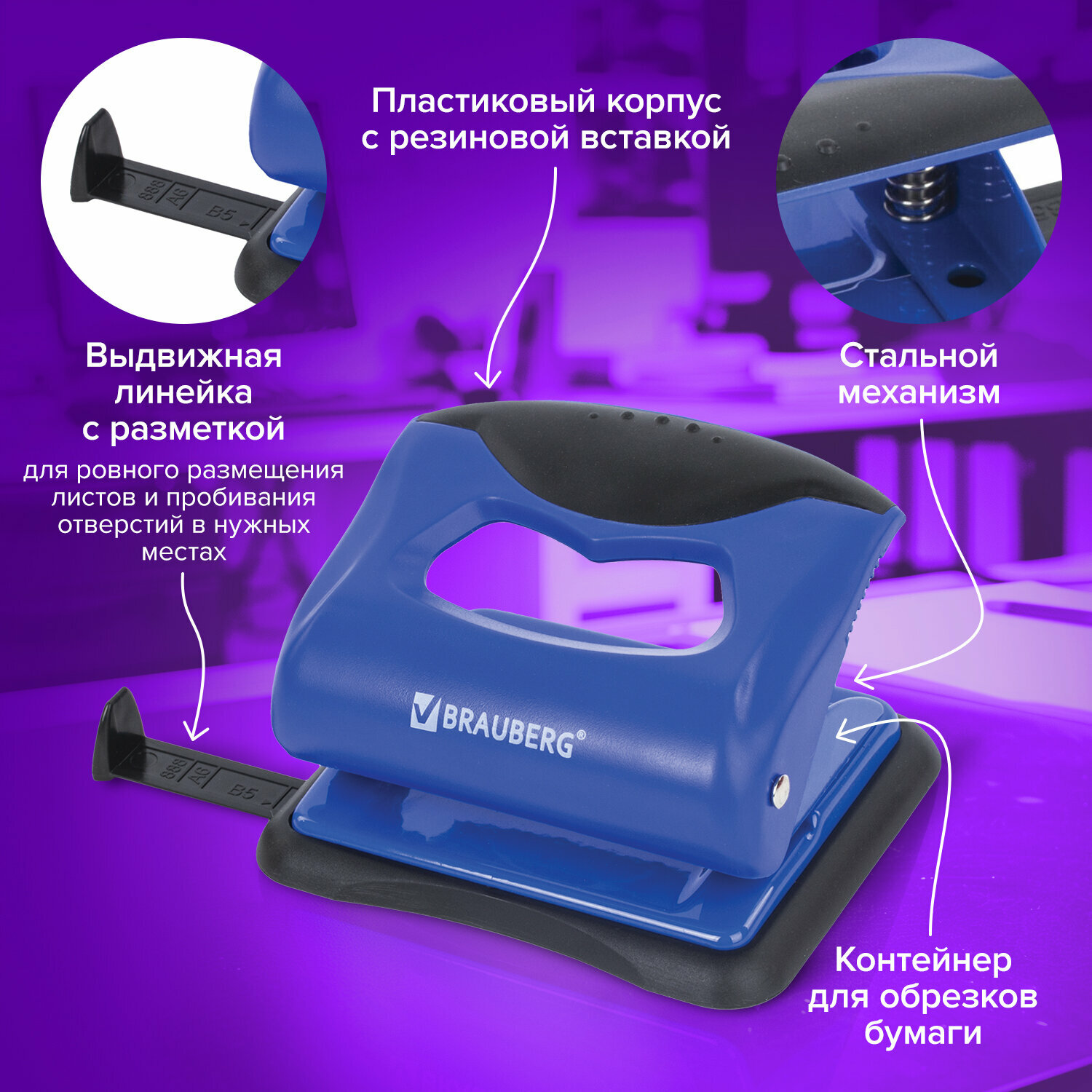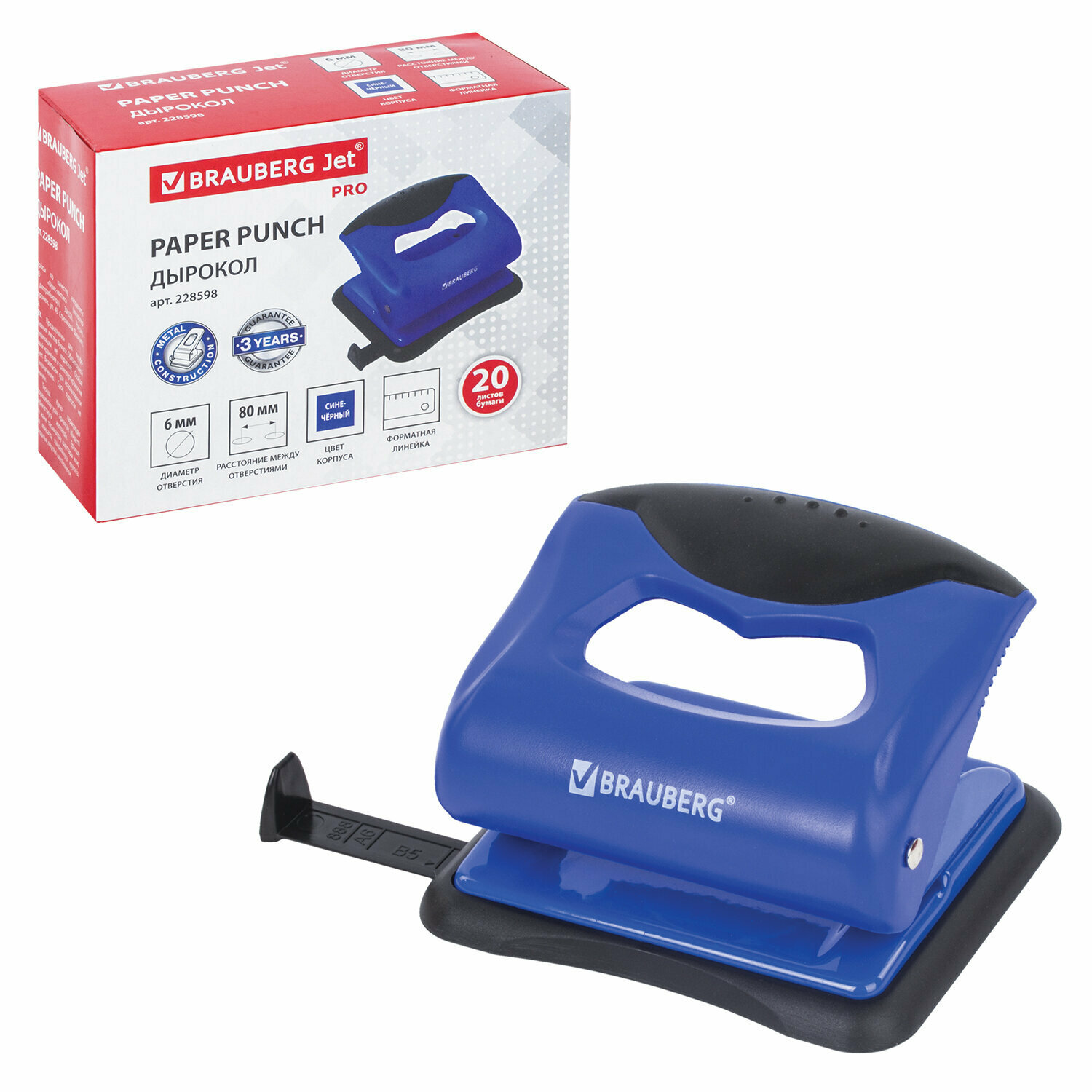 Купить Дырокол BRAUBERG "JET PRO", до 20 листов, сине-черный, 228598 В комплекте: 1шт.