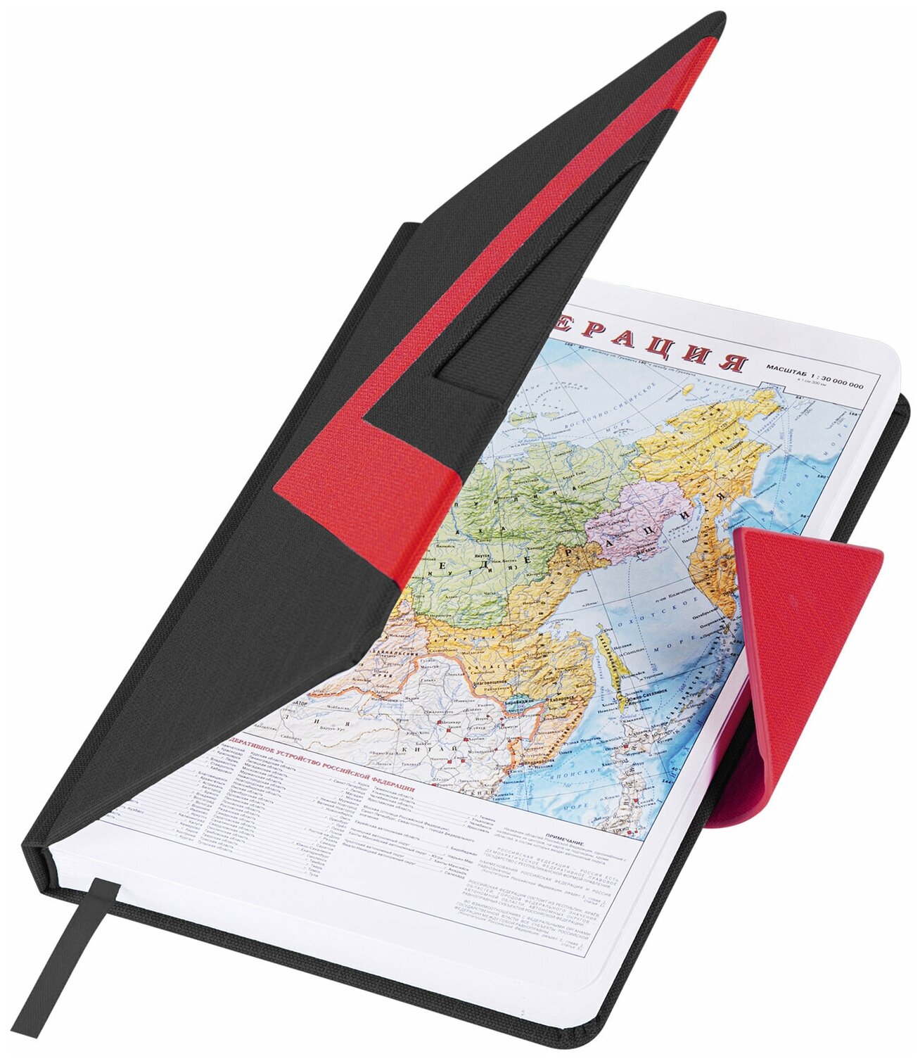 Ежедневник-планер (планинг), записная книжка, блокнот недатированный А5 138x213 мм Brauberg Waves под кожу, застежка 160 л., черный/красный, 111876