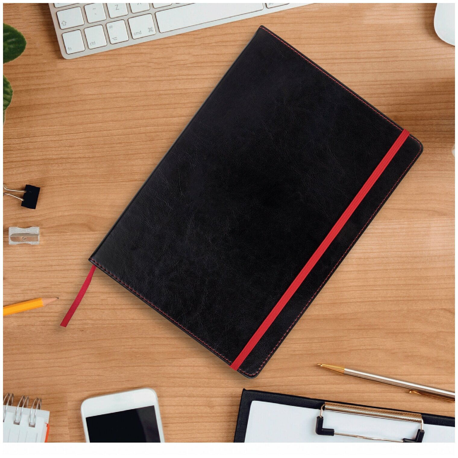 Ежедневник-планер (планинг) / записная книжка / блокнот недатированный с резинкой А4 210х297 мм 160 листов под кожу черный Brauberg Office, 113285
