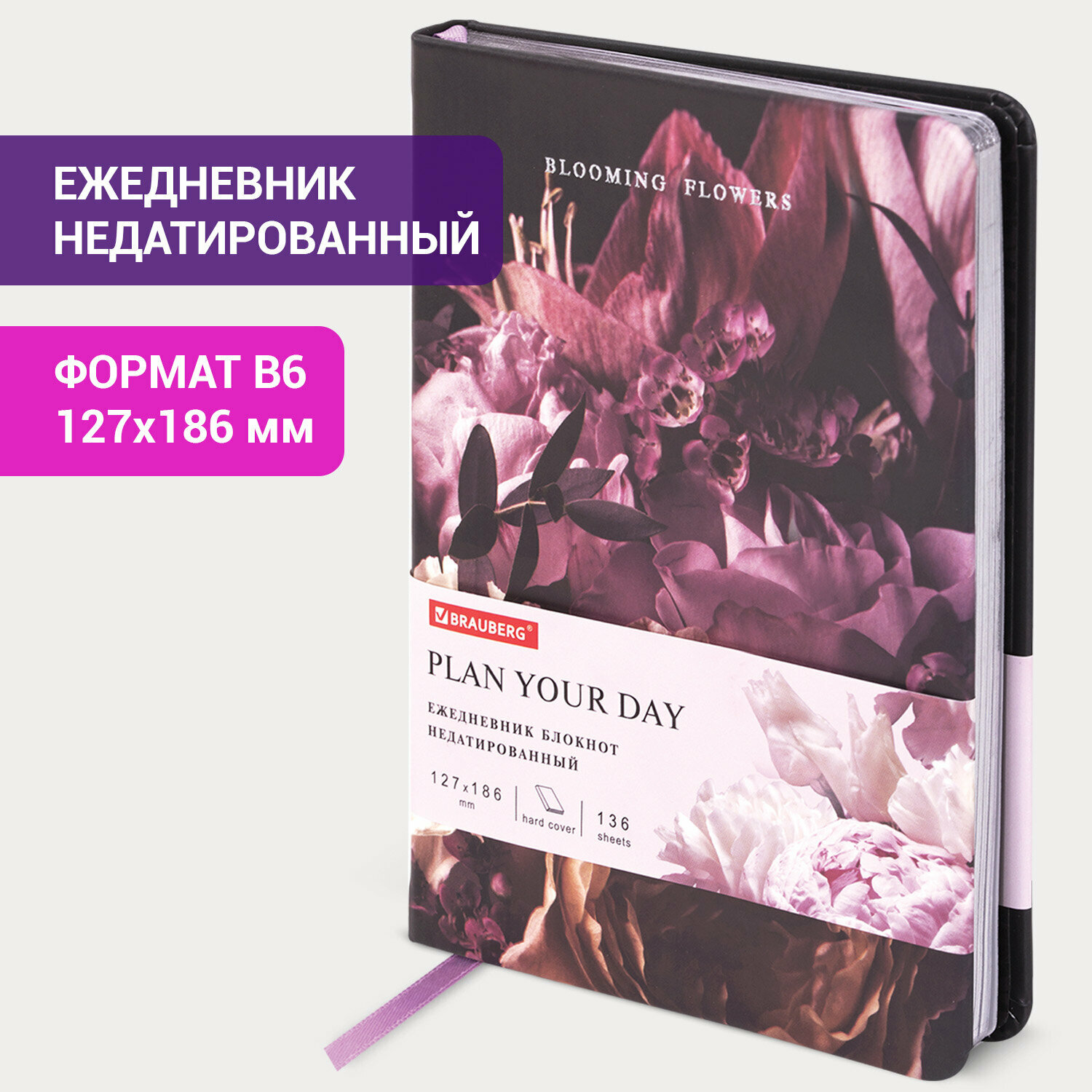 Ежедневник недатированный Brauberg B6 127х186 мм, Vista, твердый, 136 листов, "Flowers" (112109)