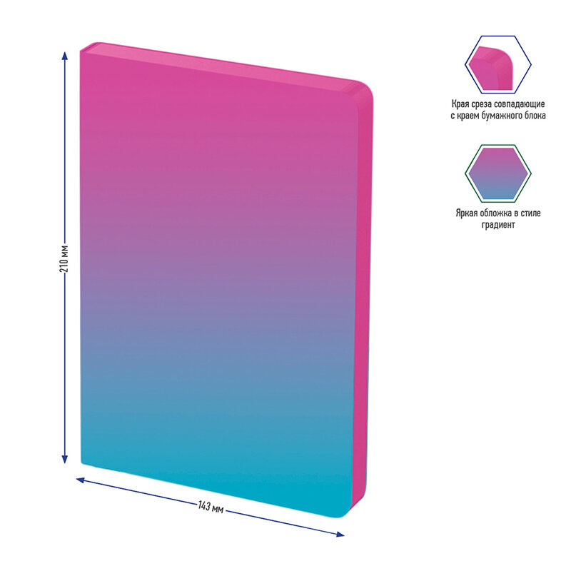 Ежедневник недатир. A5, 136л., кожзам, Berlingo "Radiance", розовый/голубой градиент (арт. 299178)