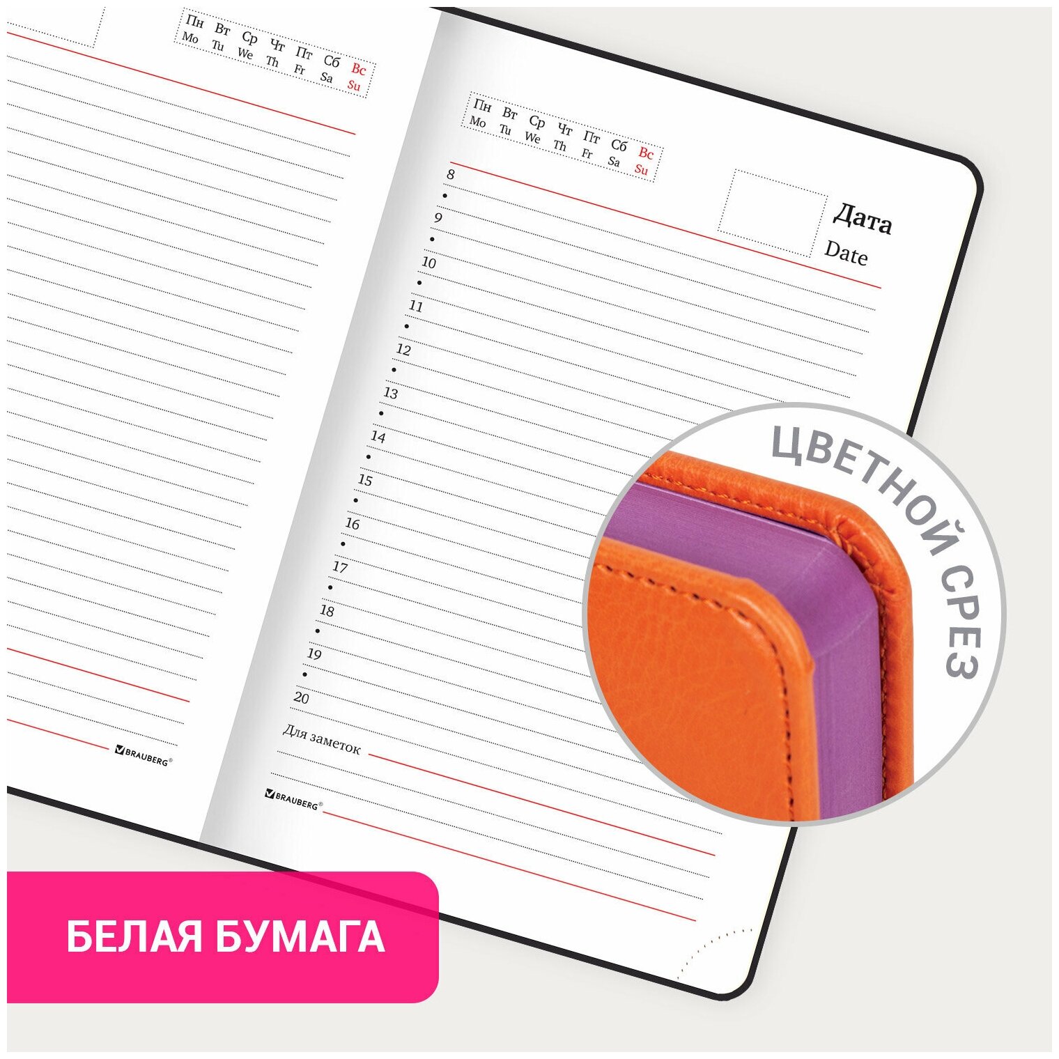 Ежедневник недатированный малый формат 100×150 мм А6 BRAUBERG «Rainbow» под кожу, 136 л., оранжевый, 111688 /Квант продажи 1 ед./