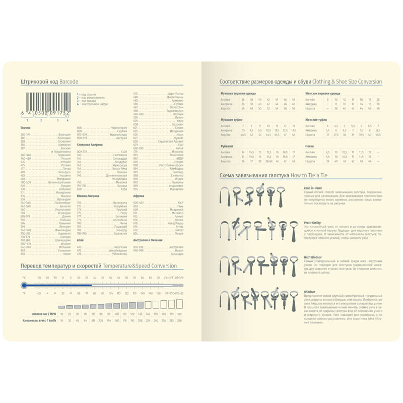 | Особенности | перфорация уголков / справочная информация / ляссе / прошивка по периметру обложки |