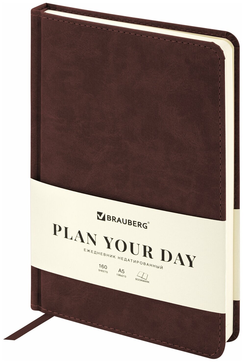 113363, Ежедневник недатированный А5 138х213 мм BRAUBERG Status, под кожу, 160 л., коричневый, 113363