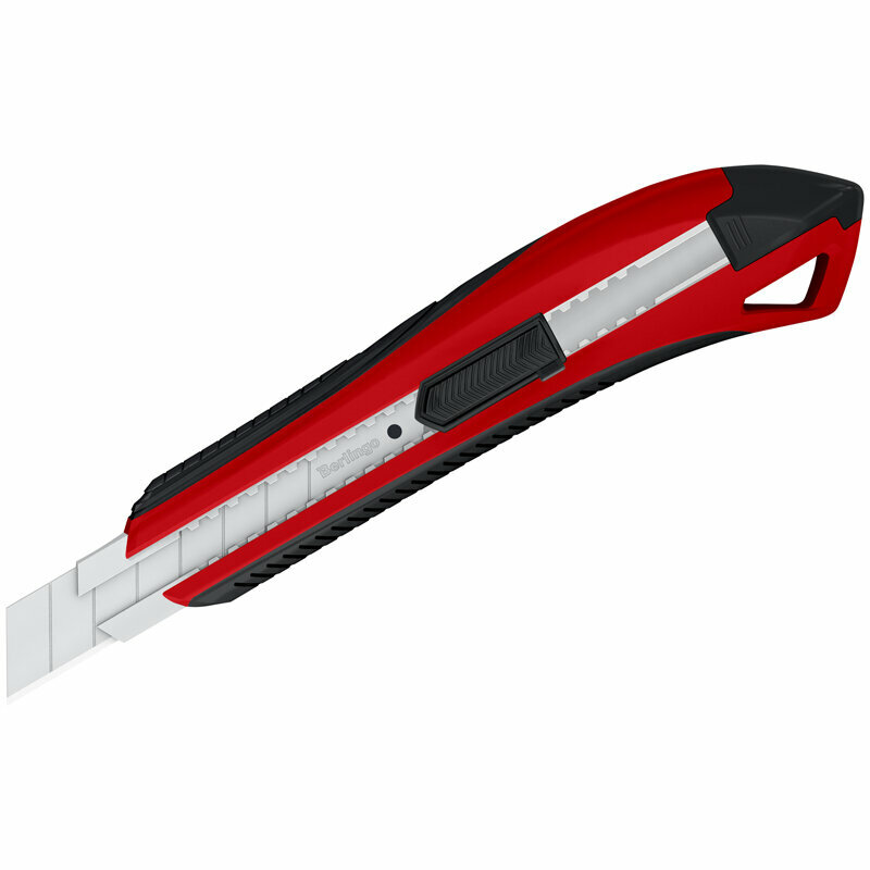 Нож канцелярский Berlingo Razzor 300, auto-lock, мягкие вставки, красный, 18 мм