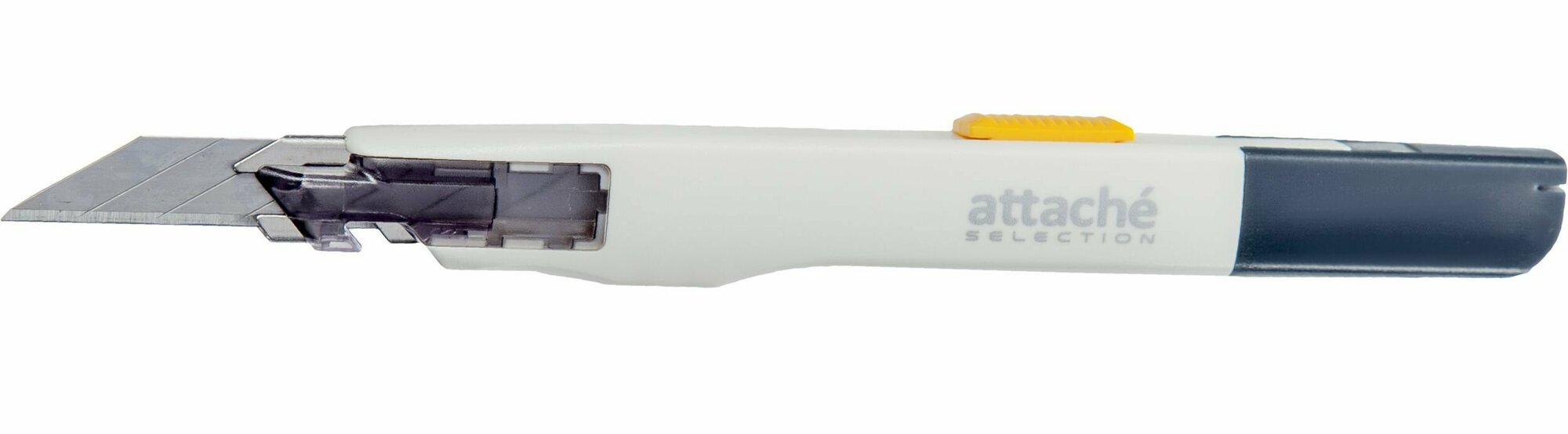 Нож канцелярский Attache Selection Genius 9 мм для правшей/левшей с фиксатором серый, 389386