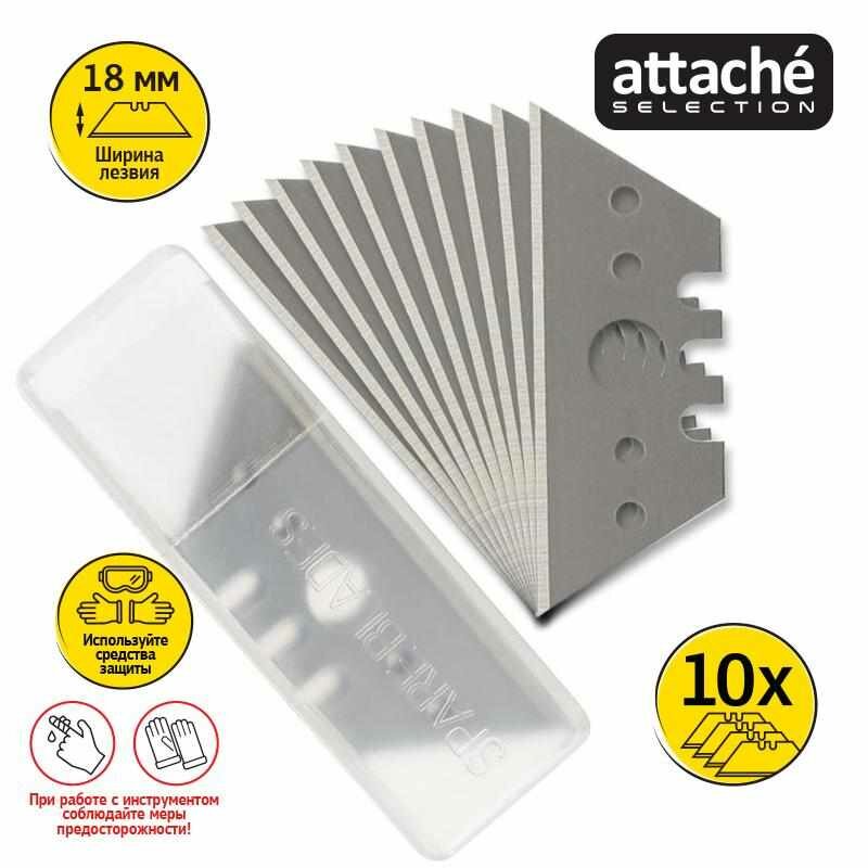 Лезвия сменные для универсальных ножей Attache Selection, 18 мм, трапециевидные, 10 штук в упаковке