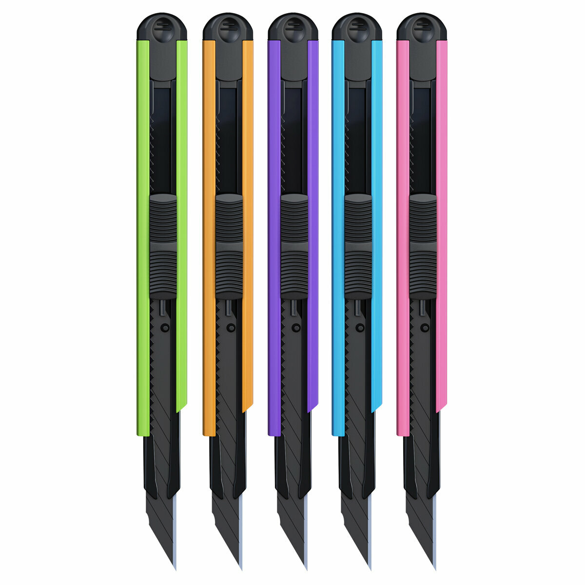 | Дополнительная информация | Материал корпуса:металл Цвет корпуса:ассорти Ширина лезвия:9 Запасные лезвия в комплекте:нет Наличие вставок:есть Наличие металлических направляющих:есть Вид товара:нож канцелярский Упаковка ед. товара:пластиковый бокс Колпачок:нет Механизм фиксации лезвия:автоматический Форма корпуса:прямая |