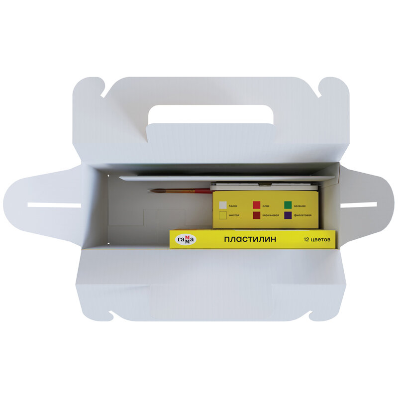 | В комплекте | - акварель 8 цветов; - пластилин 16 цветов; - гуашь 6 цветов; - кисть пони круглая №4; - 3 раскраски на картоне, формат А5. |