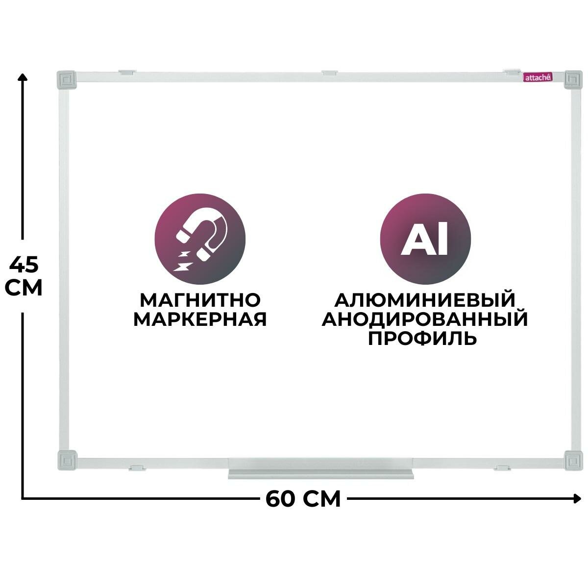 Доска магнитно-маркерная 45x60 см односекционная лаковое покрытие аллюминиевая рама Attache 1276645