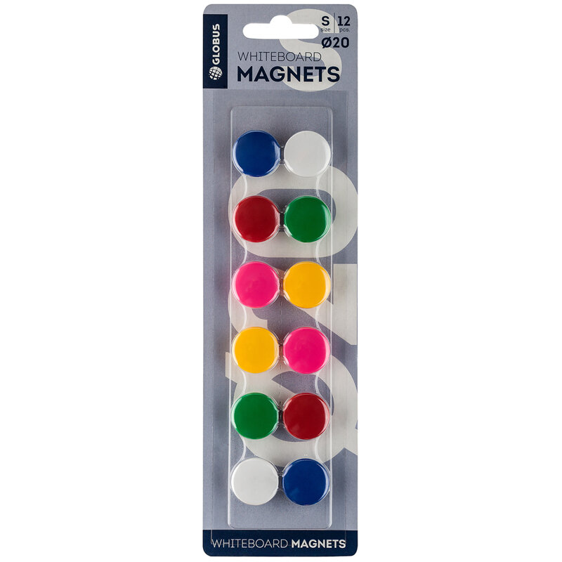 GLOBUS Магниты для досок 20 мм, 12 штук, цветные, в блистере