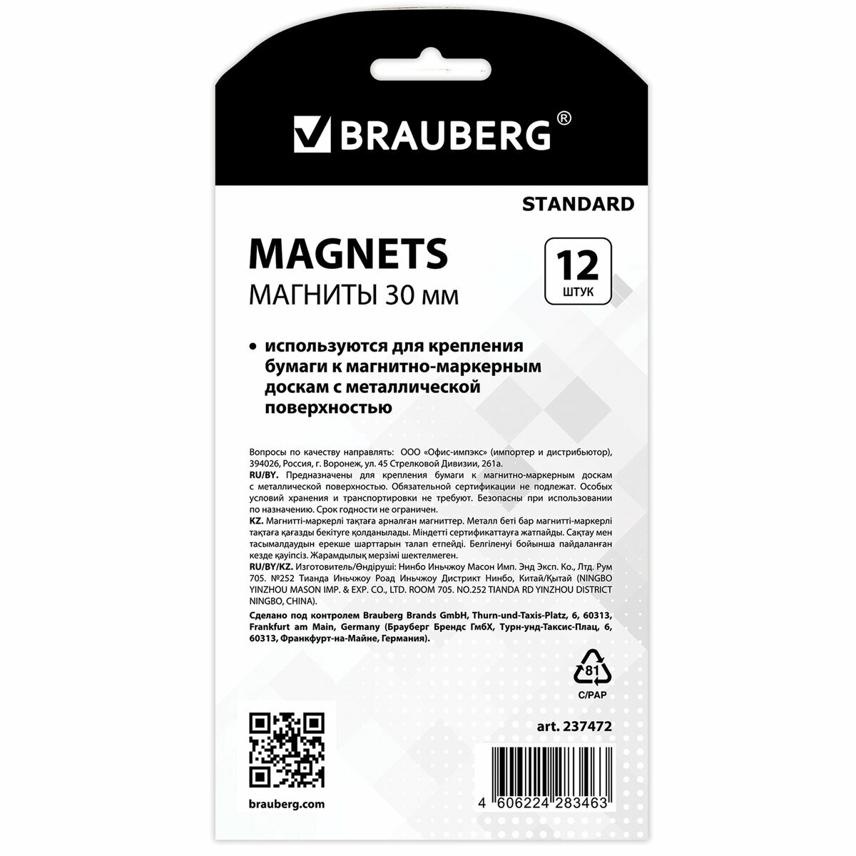 Ниже Вы можете прочитать отзывы на 1 Магниты BRAUBERG «STANDARD» 30 мм, набор 12 шт., ассорти, 237472, ознакомится с подробными характеристиками, посмотреть интересные обзоры и фотографии на 1 Магниты BRAUBERG «STANDARD» 30 мм, набор 12 шт., ассорти, 237472.