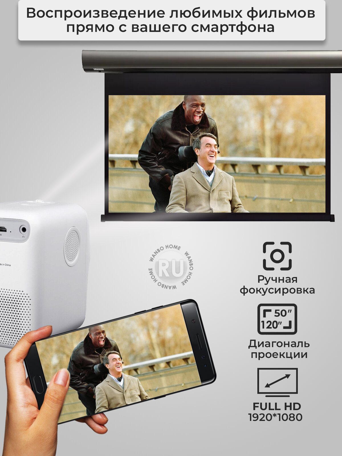 | Отзыв: | Сначала промучились с воспроизведением видео со смартфона — нормально не работал. Потом прям на проектор скачали Кинопоиск и теперь можно смотреть все, что хотели)