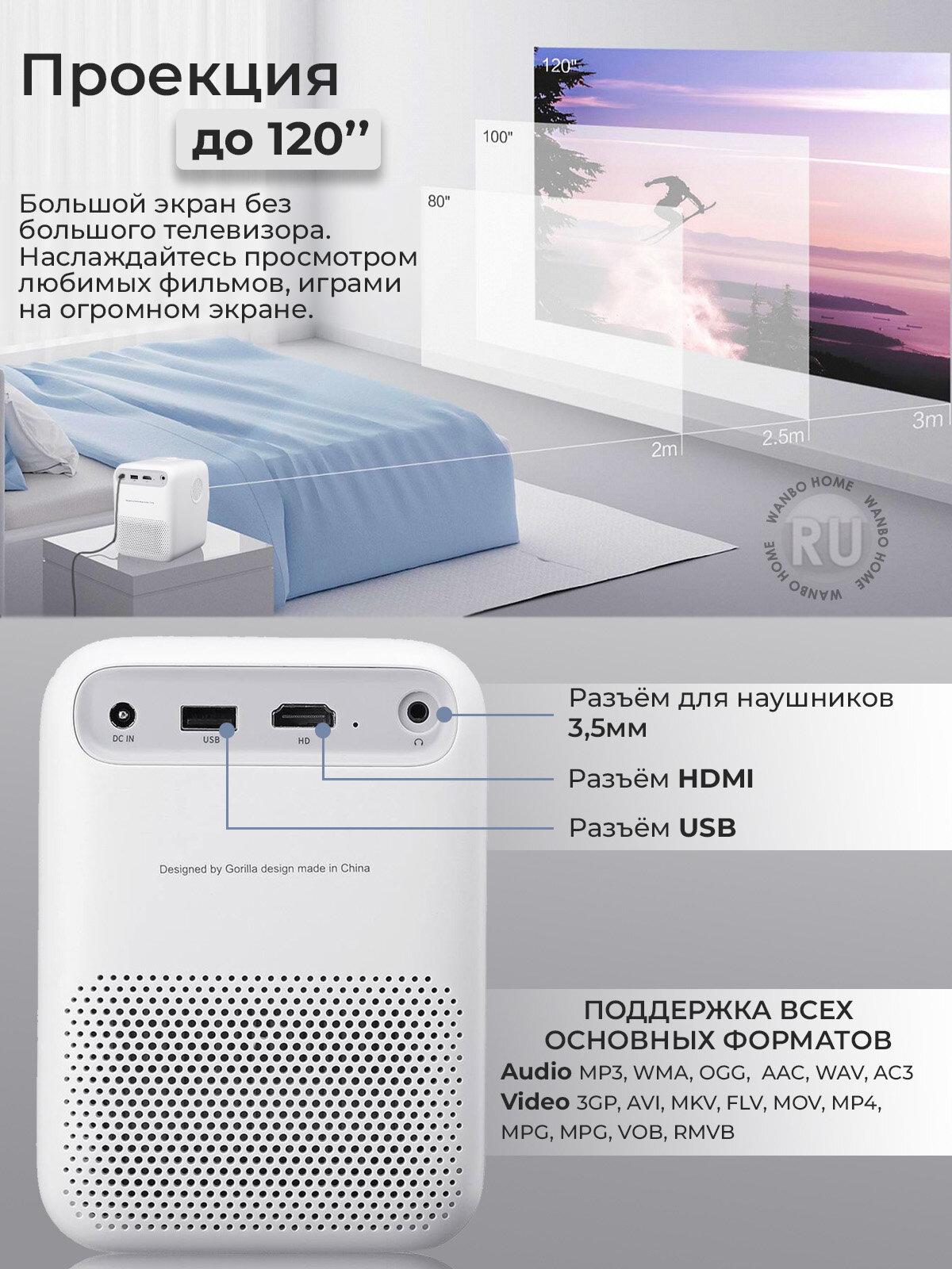 | Мин. проекционное расстояние | 1 м |