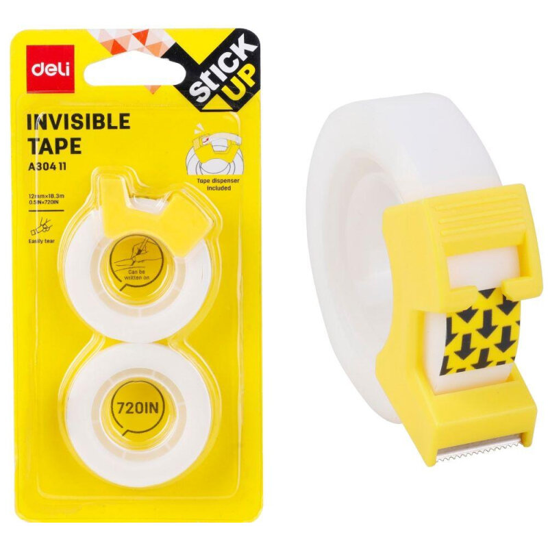 Клейкая лента канцелярская Deli EA30411 прозрачная ширина 12мм длина 18.3м невидимая блистер (упаковка: 2 штуки)