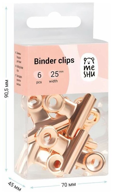 Купить Зажимы-бульдоги для бумаг 25мм Meshu "Rose Gold" 6шт бокс с европодвесом 1 шт