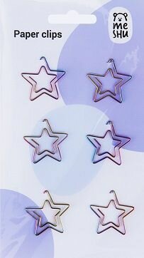 Скрепки фигурные 25мм, Meshu "Stars", 6шт., пакет с европодвесом, 328215