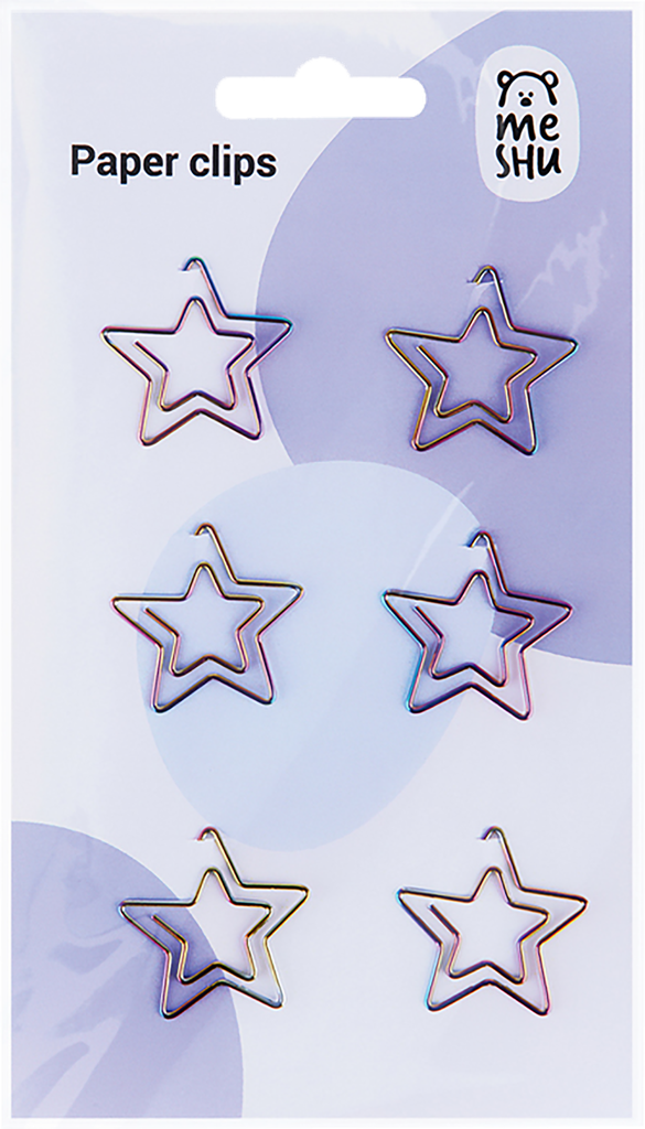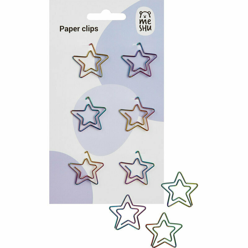 Скрепки Meshu фигурные 25 мм, "Stars", 6 шт, пакет с европодвесом (MS_41585)