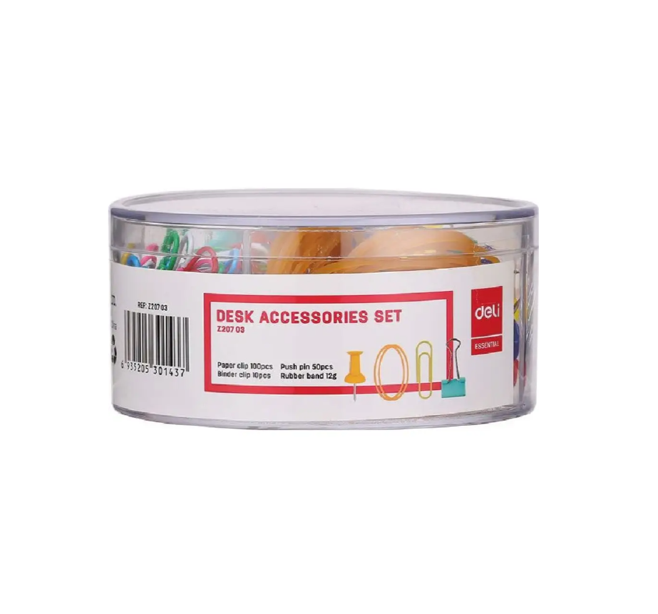Набор мелкоофисный Deli EZ20703, резинки для купюр 12гр, гвоздики 50шт, скрепки 100шт, зажимы 10шт