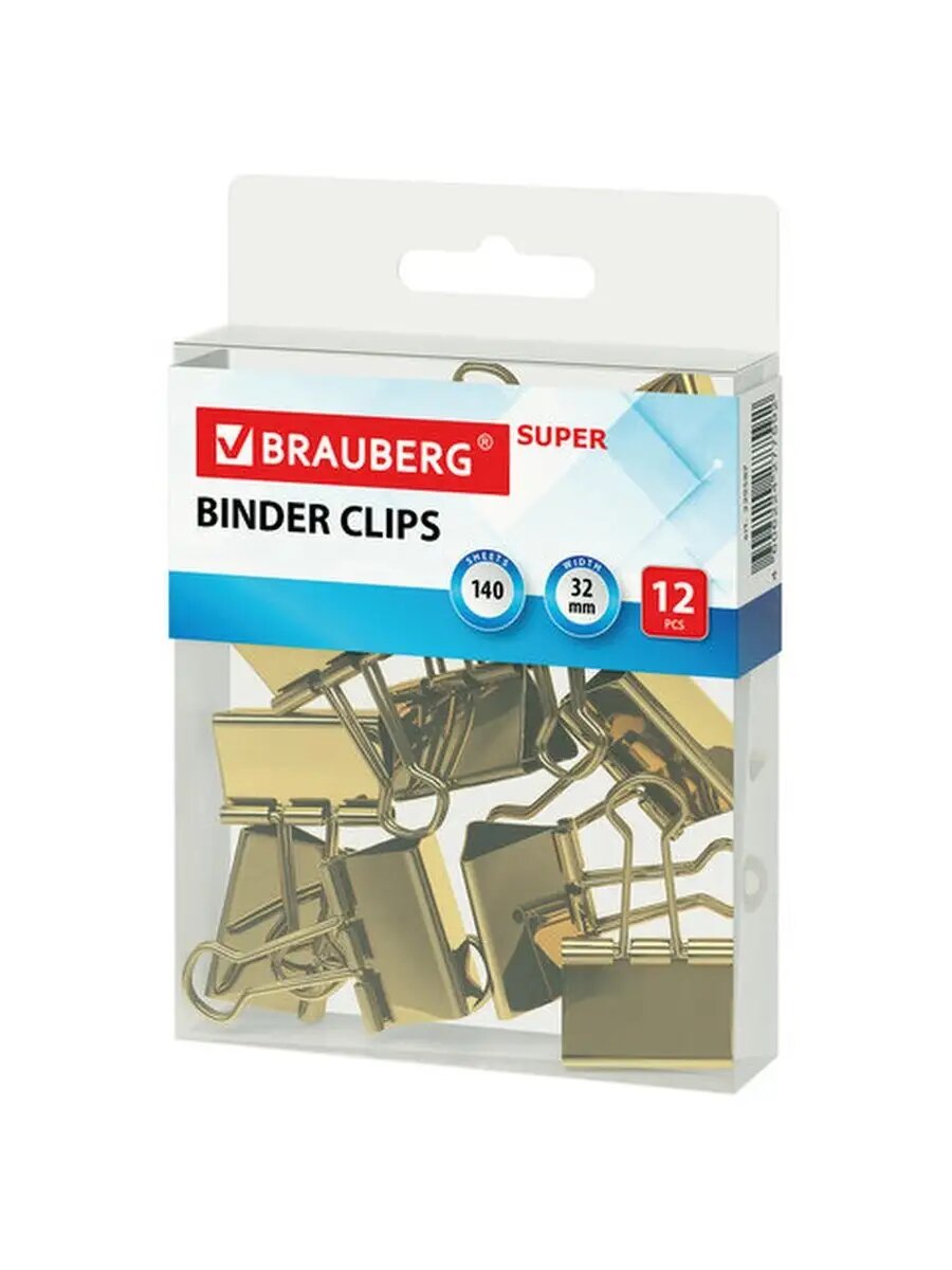 Зажимы для бумаг BRAUBERG, комплект 12 шт., 32 мм, на 140 ли