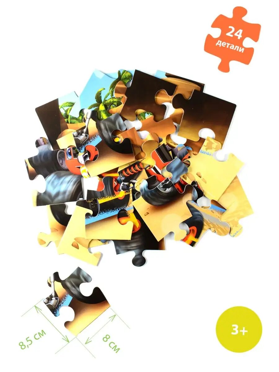 Красочный макси-пазл "Вспыш и чудо-машинки", игра-головоломка для малышей, 24 крупных ярких детали, развитие внимания и мелкой моторики