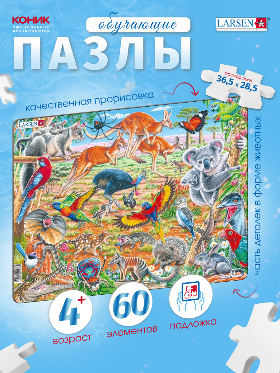 Пазлы для детей Larsen "Дикие животные Австралии", 60 элементов, FH45