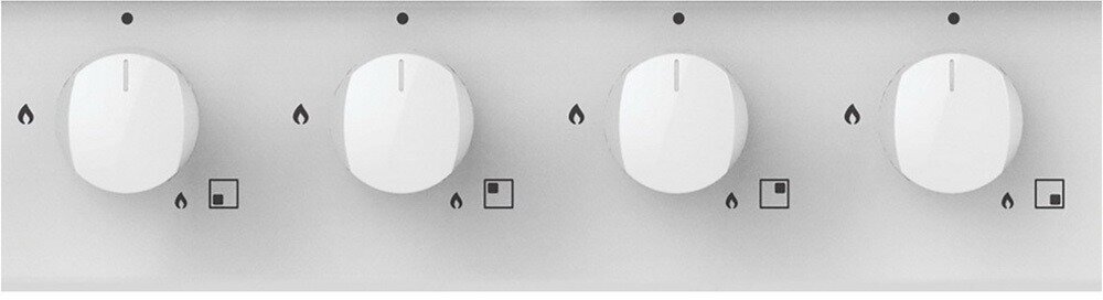 Газовая варочная поверхность 60 см. Цвет: Белый. Ручки: Smart. Газ-контроль. Автоматический электроподжиг. 4 конфорки: быстрая 2,7 кВт, 2 полубыстрые