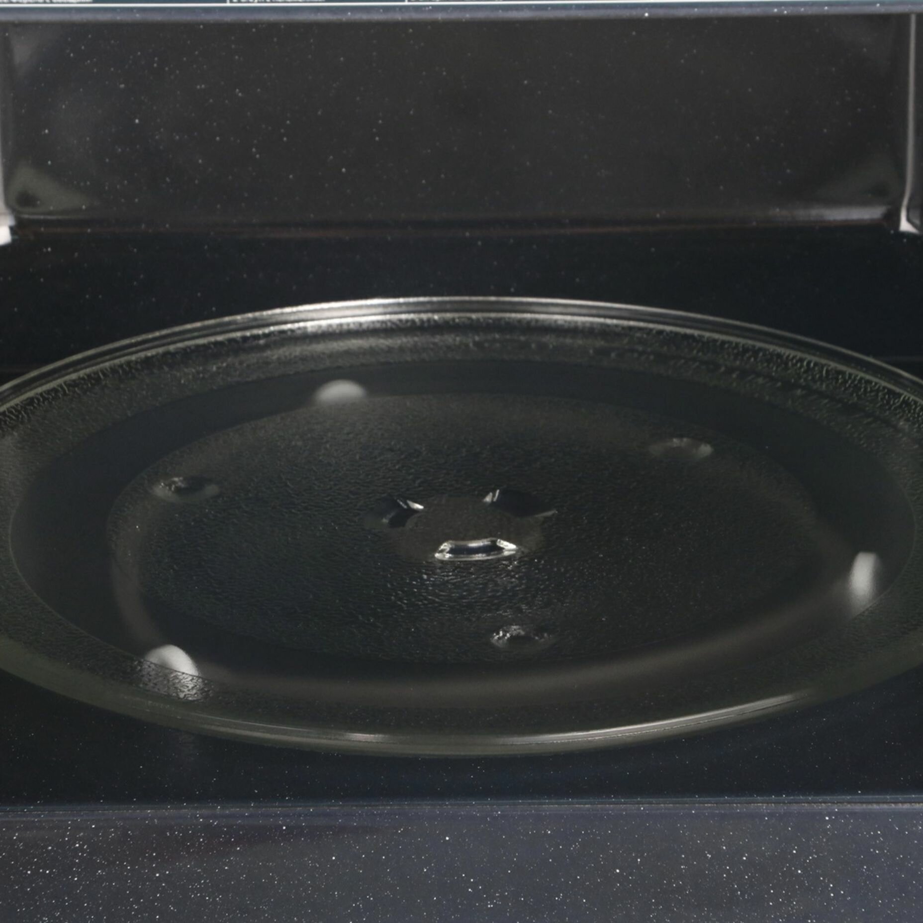 Почти полностью непрозрачное стекло, за которым ничего не видно. Достаточно маленькая мощность по сравнению с такой же микроволновой печью LG, купленной вдвое дешевле - поставили стакан воды (~200ml) на 2 минуты на максимальную мощность - согрелся, но до кипения далеко. |