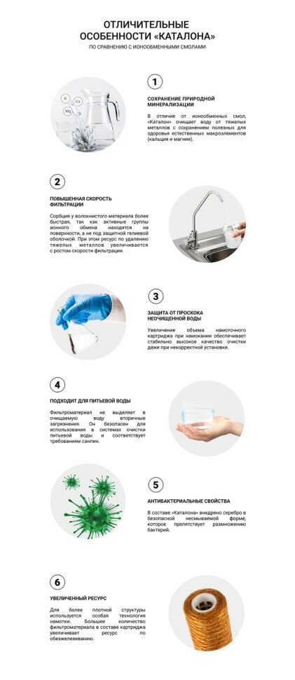 | Плюсы: | Очищает воду от рыжего цвета и запаха железа. |