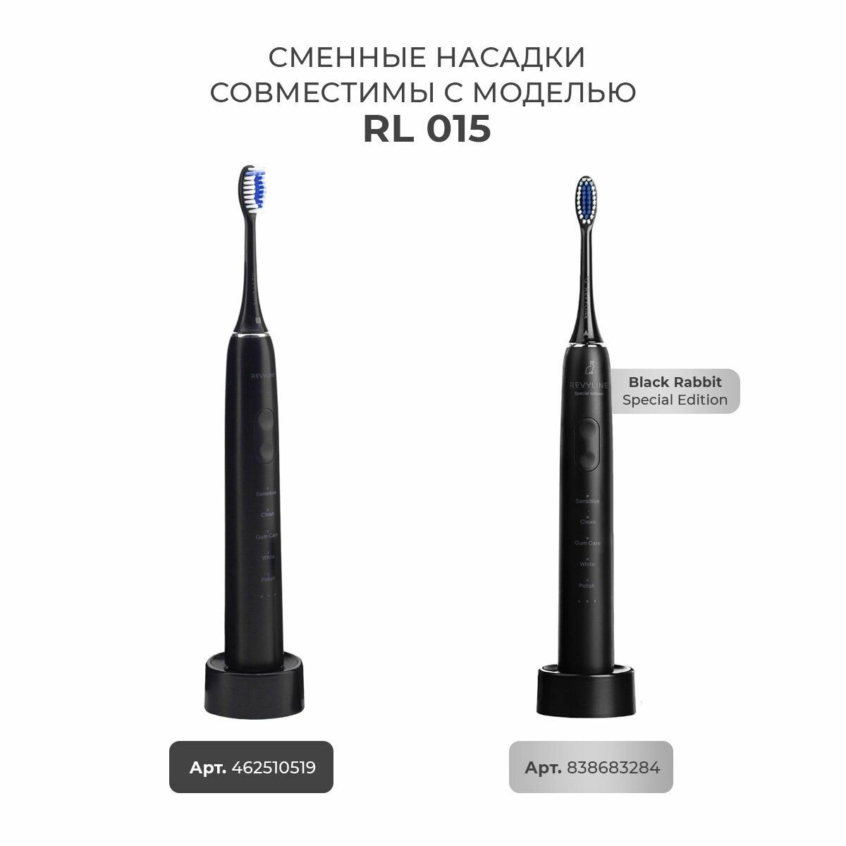 Сменные насадки для электрической звуковой зубной щетки Revyline RL 015, белые, 2 шт.