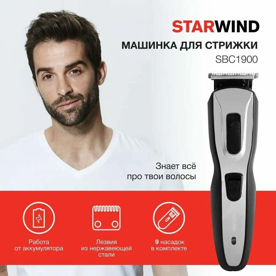 Машинка для стрижки Starwind SBC1900 черный/серебристый 2Вт (насадок в компл:9шт)