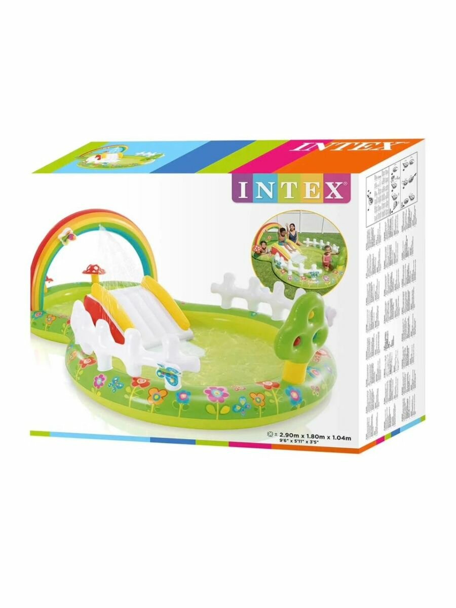 Купить Игровой центр "Мой сад" с разбрызгивателем, горкой и игрушками, Intex 290х180х104см, 450л, до 54кг, от 2 лет, 57154