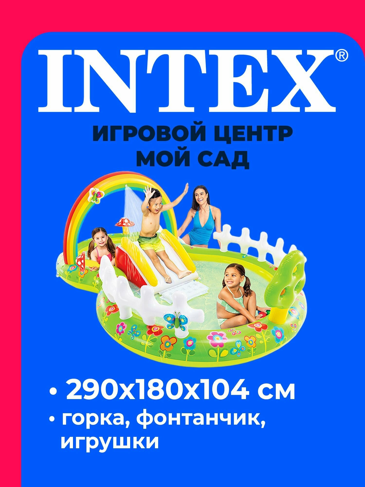Игровой центр "Мой сад" с разбрызгивателем, горкой и игрушками, Intex 290х180х104см, 450л, до 54кг, от 2 лет, 57154 интересное: