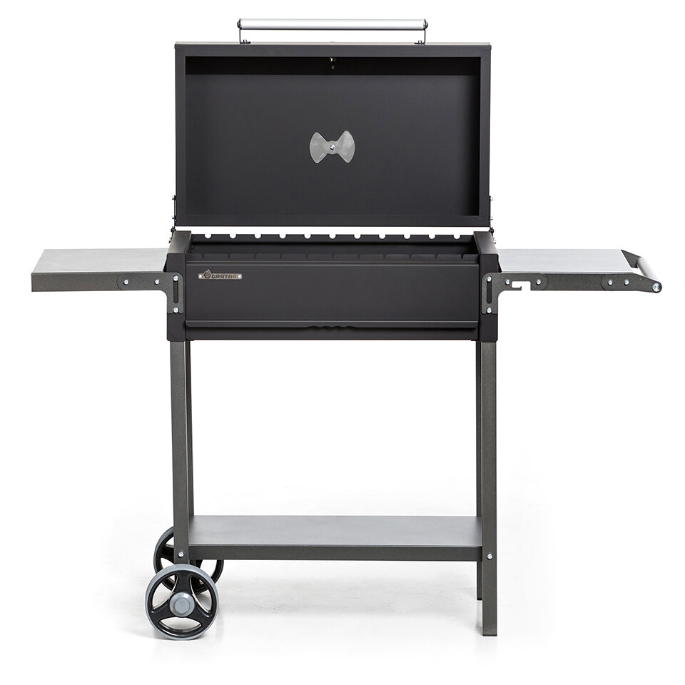 Гриль - мангал передвижной на колёсах, с двумя боковыми полками, с крышкой, с термометром и зольным ящиком GRATAR МАН 205