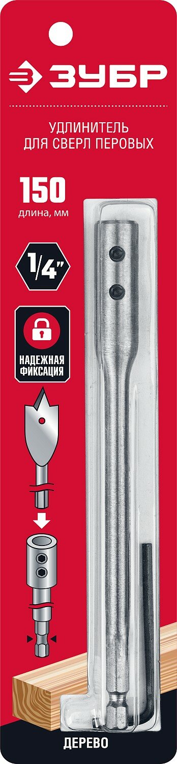 ЗУБР 150мм, удлинитель с имбусовым ключом для сверл перовых, хвостовик HEX 1/4″