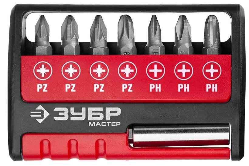 Набор бит Зубр MX, Cr-V 25мм с магнитным держателем, 8 предметов