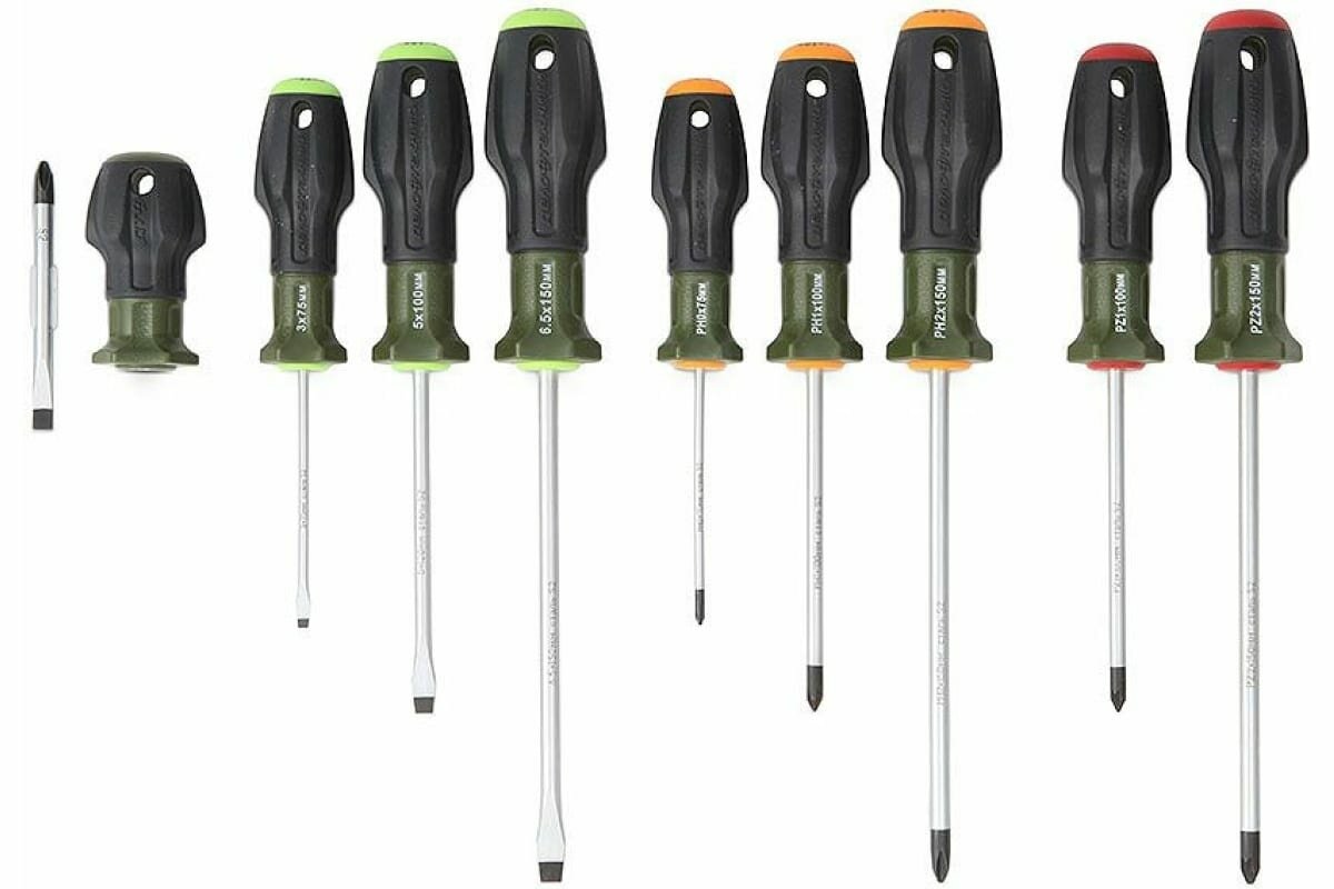 | Отвертки подробно | SL3×75, SL5×100, SL6.5×150, PH0×75, PH1×100, PH2×150, PZ1×100, PZ2×150, PH2×SL6×38 мм |