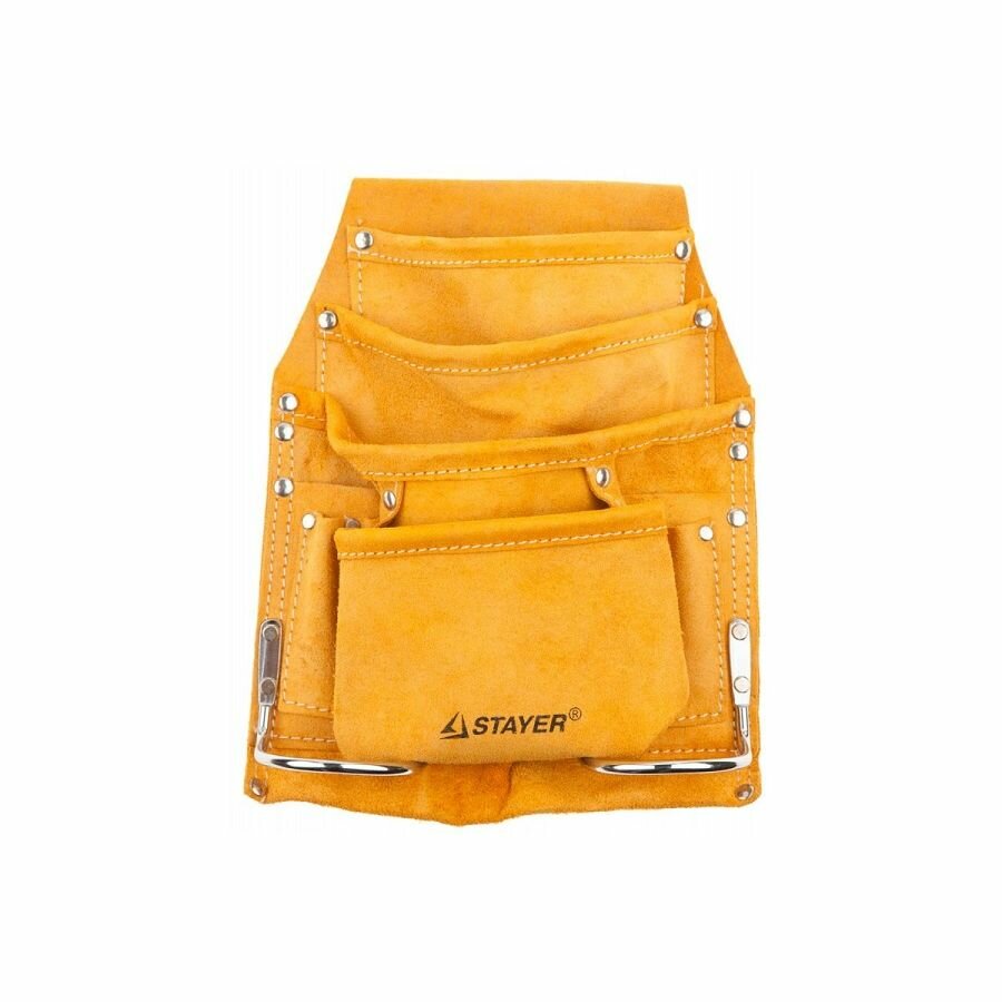 STAYER 8 карманов, кожаная, петля (скоба) для крупного инструмента, сумка поясная для инструментов 38505