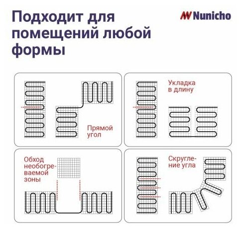 Электрический теплый пол под плитку NUNICHO 1 м2, 150 Вт/м2 двужильный экранированный нагревательный мат;