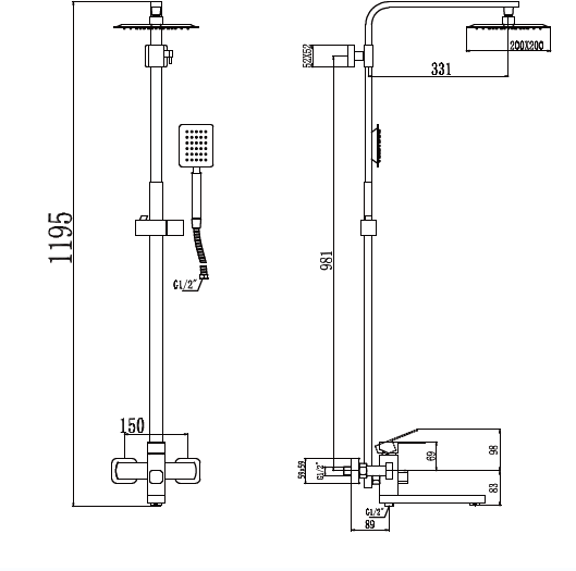 | Комплектация | верхний душ - 1 шт. / держатель для лейки - 1 шт. / душевая лейка - 1 шт. / душевая штанга - 1 шт. / смеситель - 1 шт. / шланг для душа - 1 шт. |