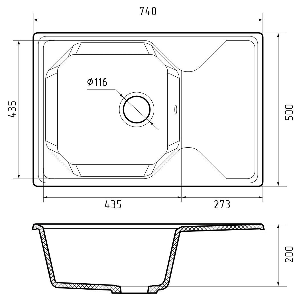 Мойка кухонная прямоугольная Granfest Unique (U-740L черный)