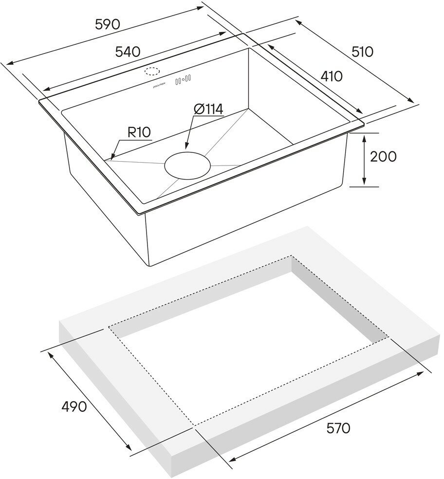 Мойка нержавеющая сталь, BRIM, PM215951-BS, брашированная сталь,590x510, Paulmark