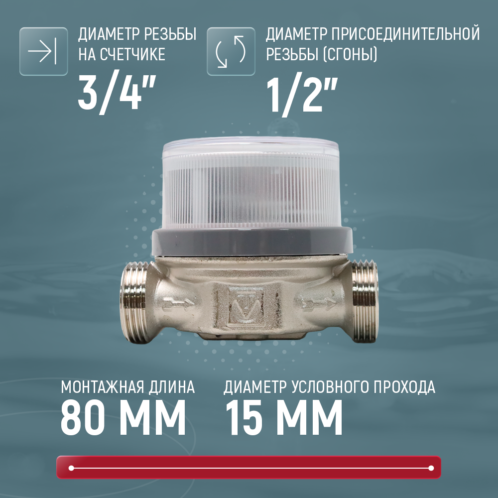 Купить Счетчик воды VALTEC VLF-15U-L.80, L80, Ду15