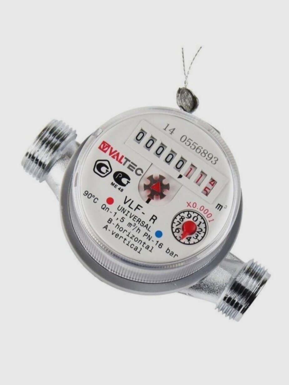 Счетчик для горячей и холодной воды Valtec VLF-15U-L.80 1/2" L=80мм Tmax=90*C 1,5м3, без сгонов