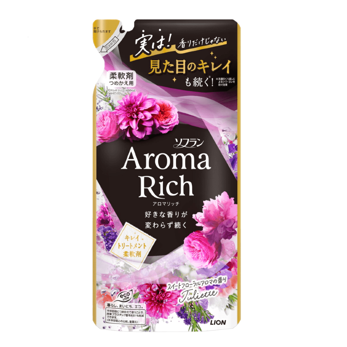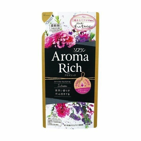 LION Кондиционер для белья Джульетт формула сохранения неизменного аромата и красоты тканей, с натуральными маслами Aroma Rich Juliette 380 мл, мягкая упаковка